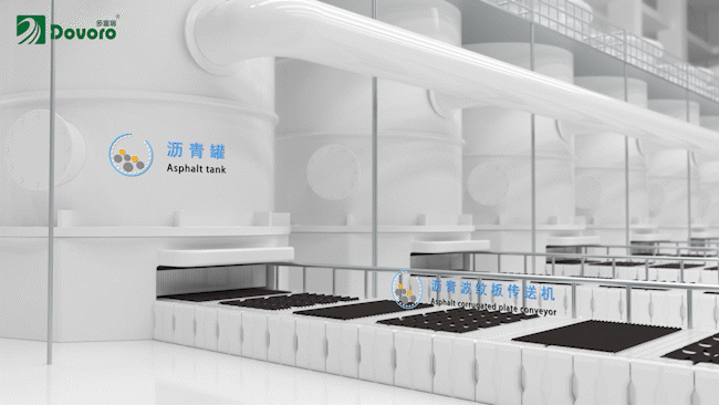 在高温高压沥青罐中,沥青会牢牢浸渍在纸板里,与纸板融合一体。当纸板从沥青罐中出来时,已经可以担任遮风挡雨的任务了。