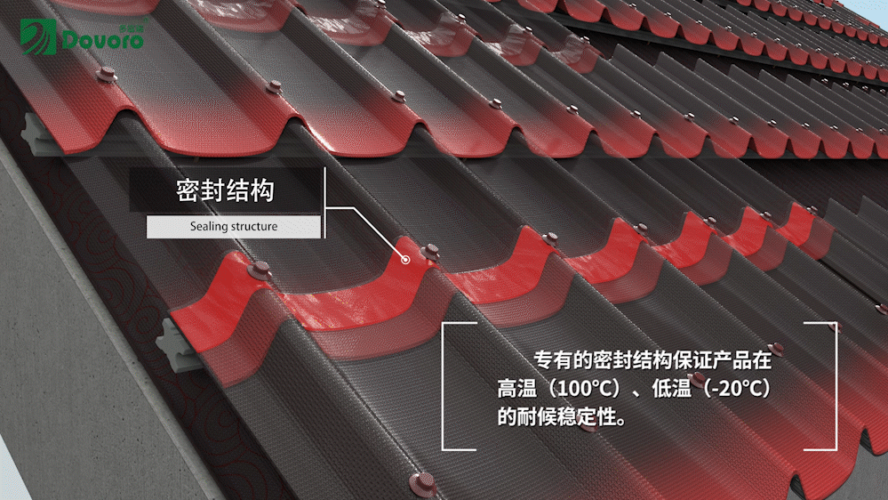 新的密封结构会填满搭接的瓦材之间的缝隙,杜绝反向灌水,提升整个屋面系统的密封性。