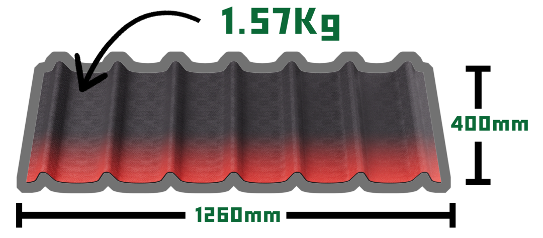 传统坡屋面中的细石混凝土保护层、钢筋网、砂浆、找平层都是重量大户,每平米约200kg。波形沥青防水板每平米仅重3.55kg,即可代替200kg的屋面构造。