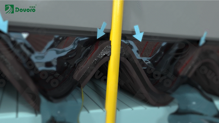 传统屋面的防水层,仅仅只有防水的效果,排水效果一般。波形沥青防水板采用与波形沥青瓦同样的材质工艺,拥有极低的吸水率以及独特的波形排水设计,少量渗入瓦材的雨水,可以顺着防水板排出屋面,达到防排结合的效果。