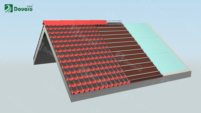 即使是在多富瑞轻质坡屋面系统中,除了使用波形沥青瓦,也可替换任意干挂瓦材,同样可以获得精简的屋面构造。