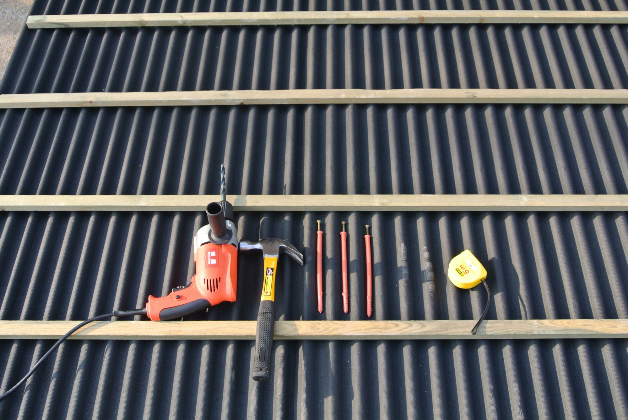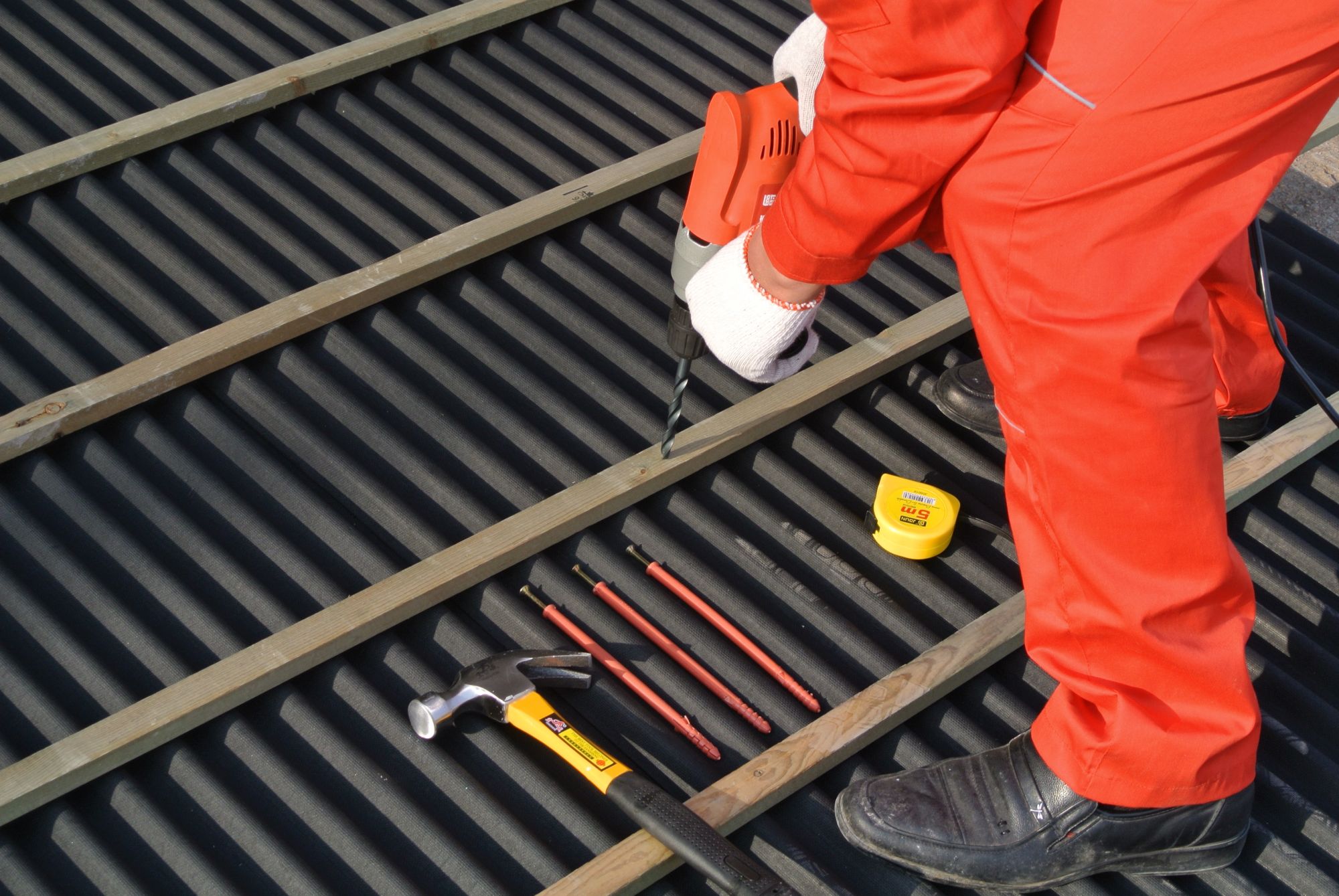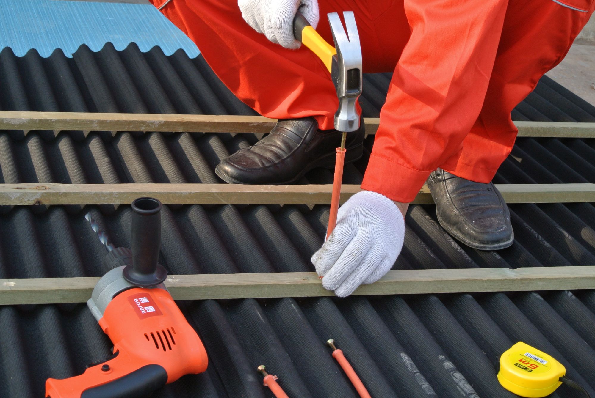 用冲击钻钻孔将挂瓦条、多富瑞波形防水板及保温板穿透